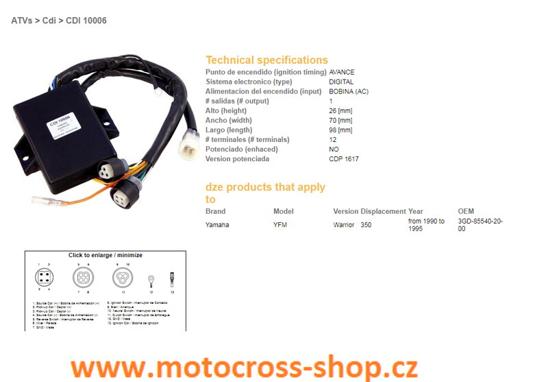 Cívka zapalování CDI YAMAHA YFM350 WARRIOR 90-95